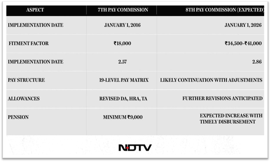 Its primary aim is to align salaries with current economic realities, including inflation, living costs, and broader financial conditions. A crucial component of this revision is the fitment factor, which helps determine the new basic pay. The 7th Pay Commission had set this factor at 2.57. Meanwhile, the 8th Pay Commission is expected to suggest a higher multiplier, although the final figure is yet to be confirmed.